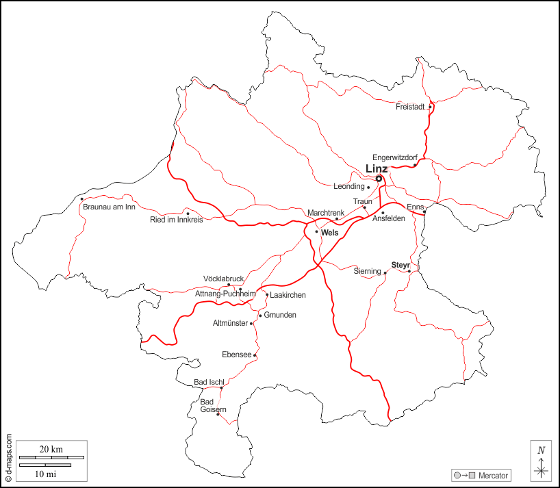 Europa > Österreich > Oberösterreich > Umrisse, Wichtige Städte, Straßen, Namen, weiß
