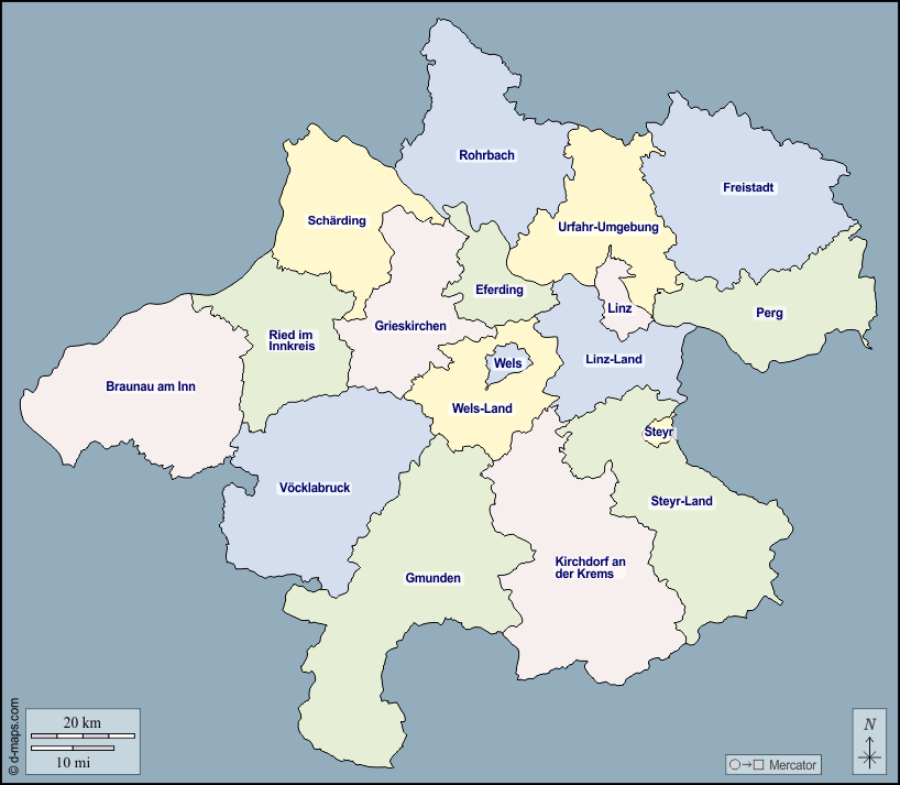 Europa > Österreich > Oberösterreich > Umrisse, Abteilungen, Namen, Farbe