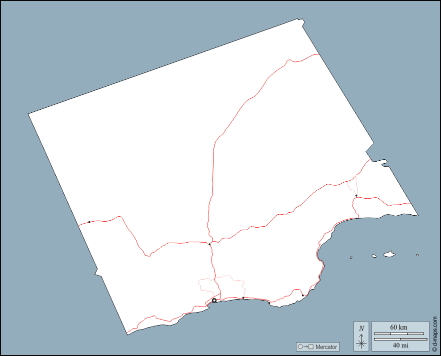 d-maps > Oman > Gouvernement Dhofar > Umrisse, Wichtige Städte, Straßen