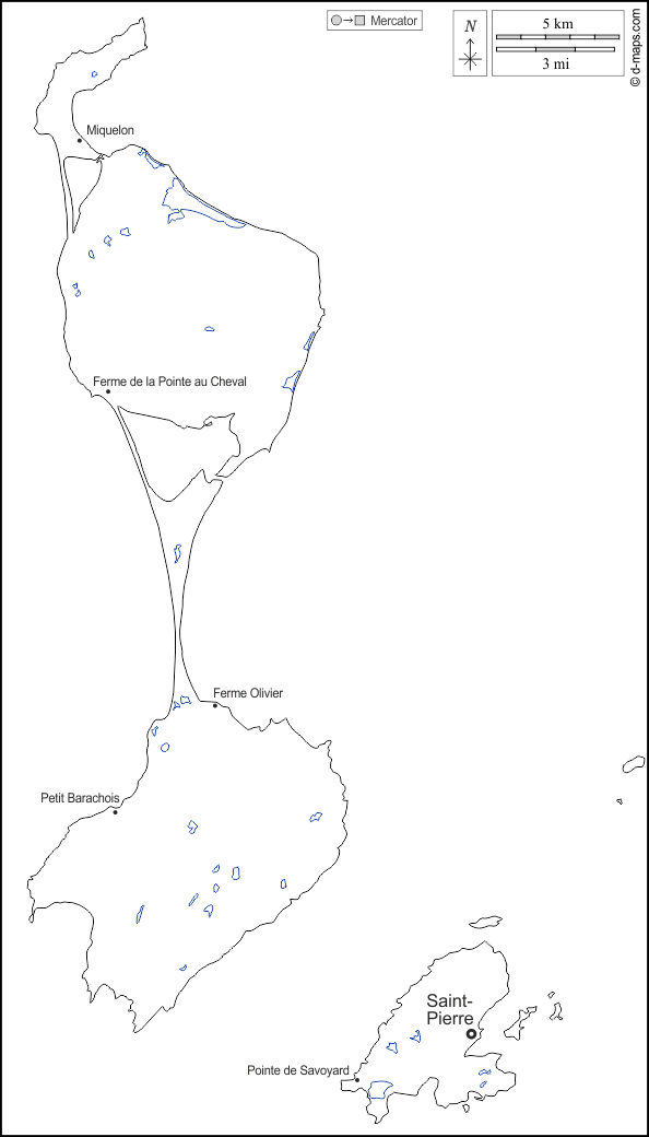 d-maps > Europa > Frankreich > Saint-Pierre-et-Miquelon > Grenzen, Hydrografie, Wichtige Städte, Namen, weiß