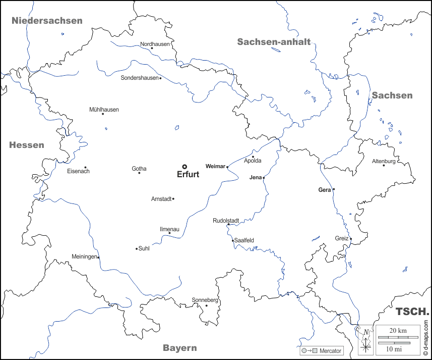 Europa > Deutschland > Freistaat Thüringen > Grenzen, Hydrografie, Wichtige Städte, Namen, weiß