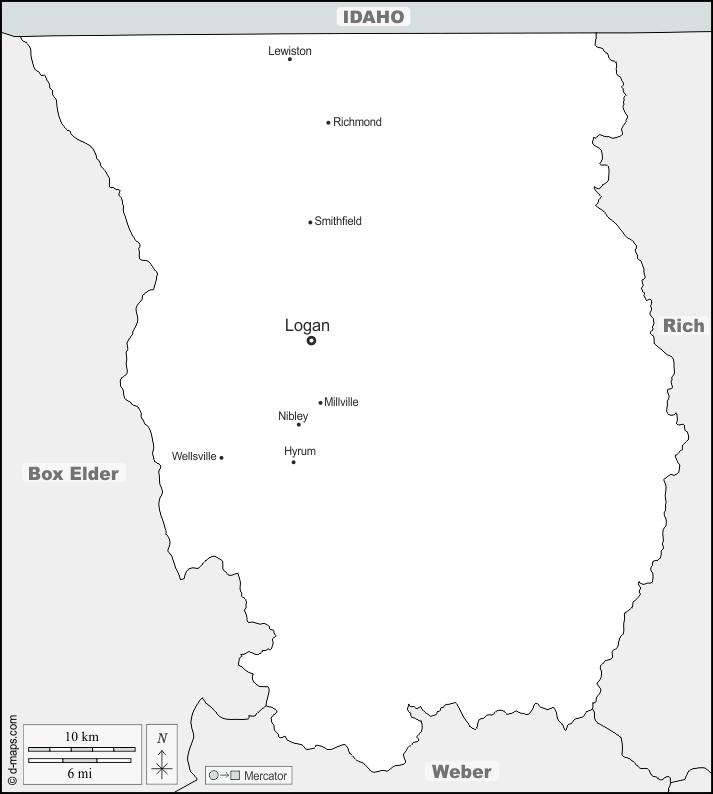 d-maps > Vereinigte Staaten von Amerika (USA) > Utah > Cache County > Grenzen, Wichtige Städte, Namen