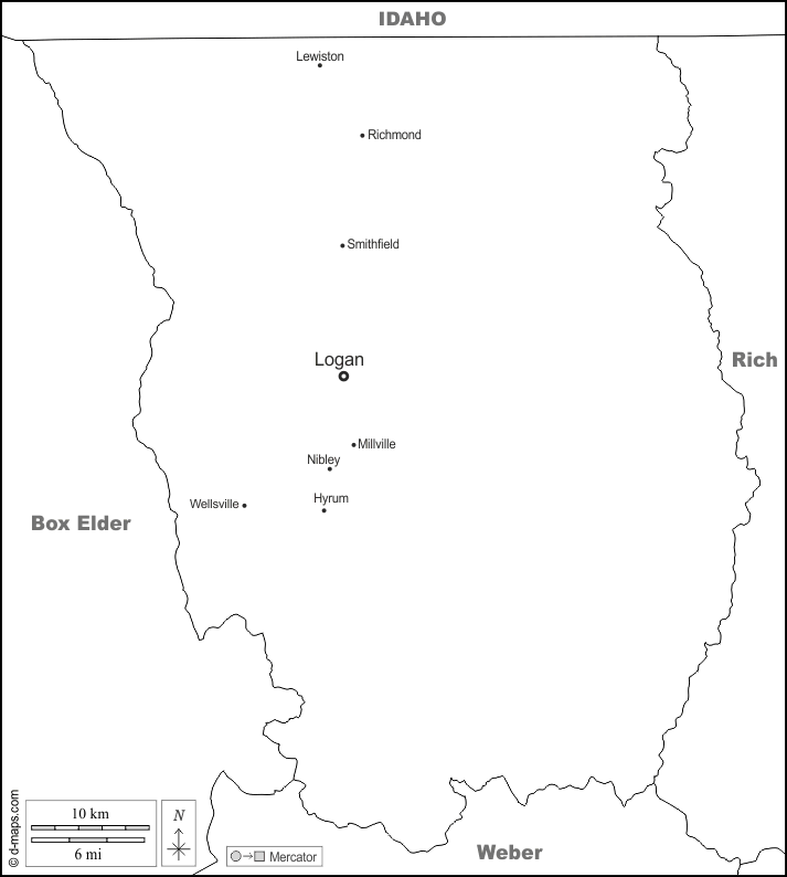 d-maps > Vereinigte Staaten von Amerika (USA) > Utah > Cache County > Grenzen, Wichtige Städte, Namen, weiß