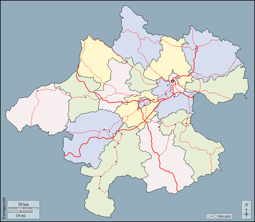 Europa > Österreich > Oberösterreich > Umrisse, Abteilungen, Wichtige Städte, Straßen, Farbe