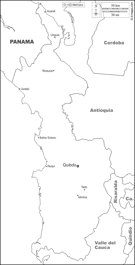 Amerika > Kolumbien > Departamento del Chocó > Grenzen, Wichtige Städte, Namen, weiß