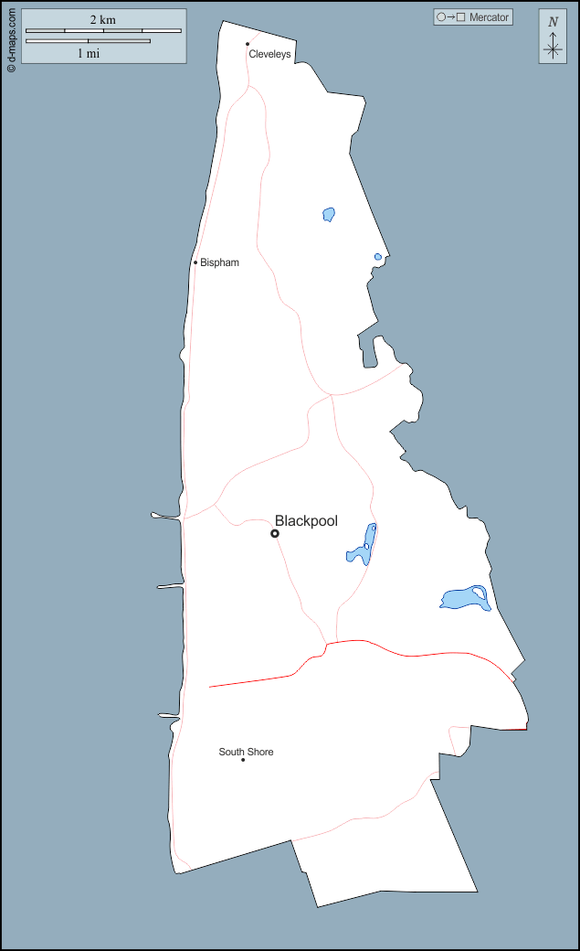 Europa > Vereinigtes Königreich > Blackpool > Umrisse, Hydrografie, Nachbarschaften, Straßen, Namen