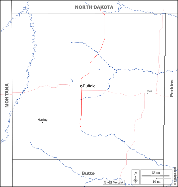 d-maps > United States of America (USA) > South Dakota > Harding County > boundaries, hydrography, main cities, roads, names, white