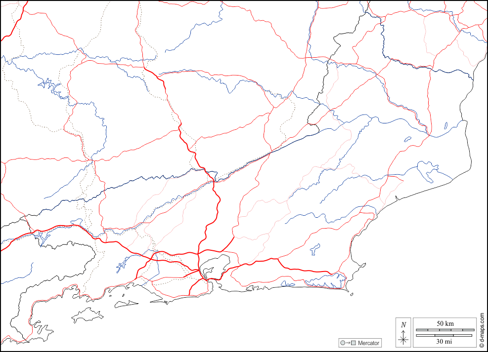 d-maps > Americas > Brazil > State of Rio de Janeiro > boundaries, hydrography, roads, white