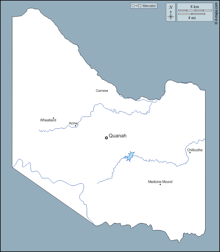 d-maps > United States of America (USA) > Texas > Hardeman County > outline, hydrography, main cities, names