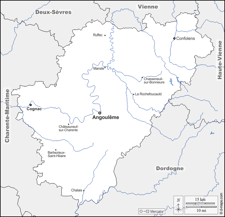 d-maps > Europe > France > Charente > boundaries, hydrography, main cities, names