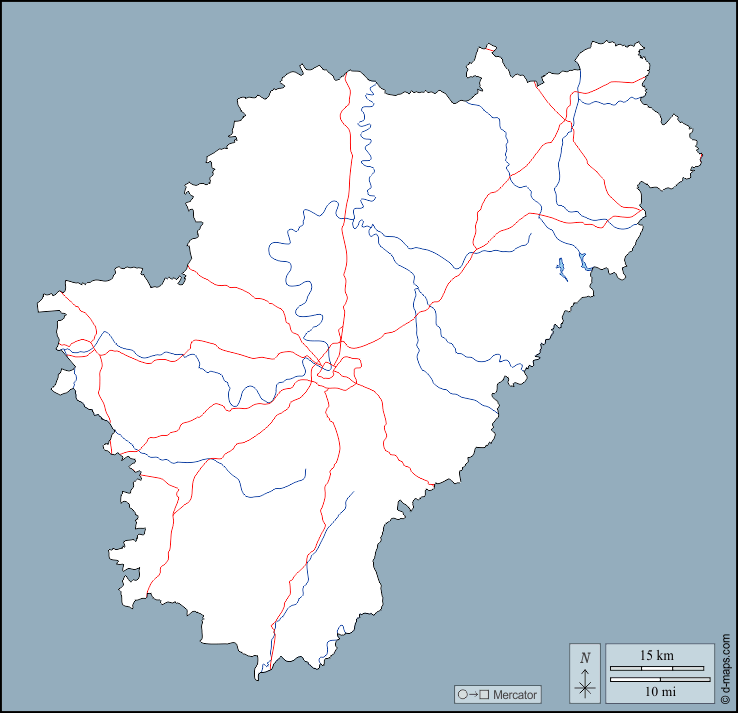 d-maps > Europe > France > Charente > outline, hydrography, roads