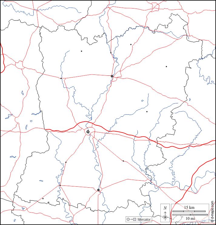 d-maps > Europe > France > Mayenne > boundaries, hydrography, main cities, roads, white