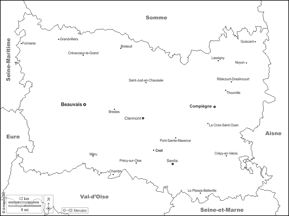 d-maps > Europe > France > Oise > boundaries, main cities, names, white