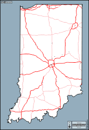 d-maps > United States of America (USA) > Indiana > Indiana > boundaries, main cities, roads, white