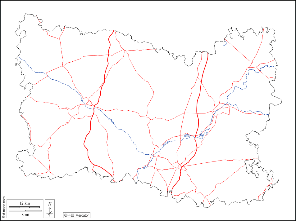 d-maps > Europe > France > Oise > outline, hydrography, roads, white