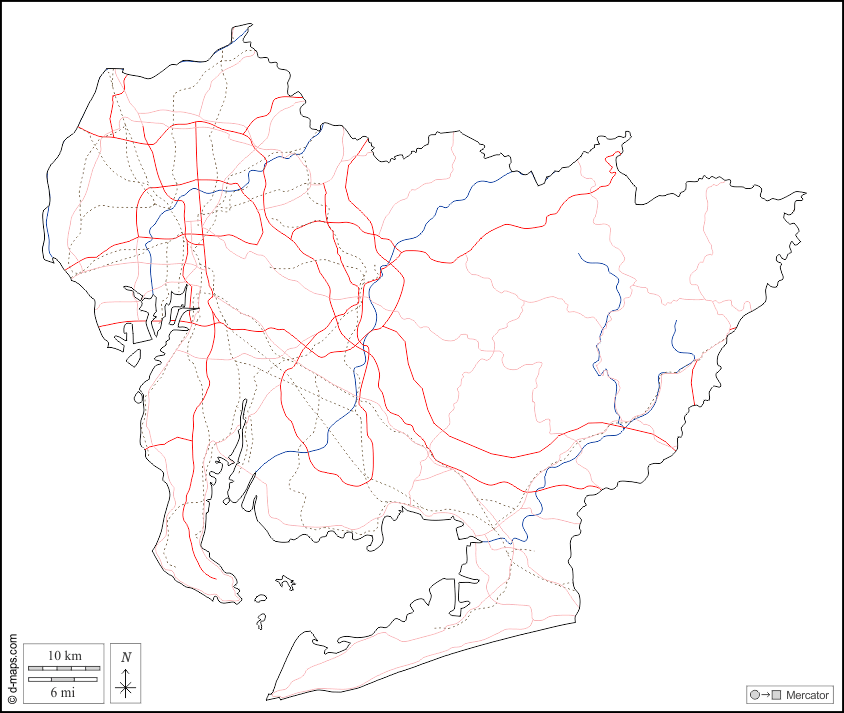 d-maps > Asia > Japan > Aichi > outline, hydrography, roads, white