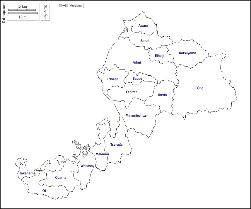 d-maps > Asia > Japan > Fukui > outline, municipalities, names, white