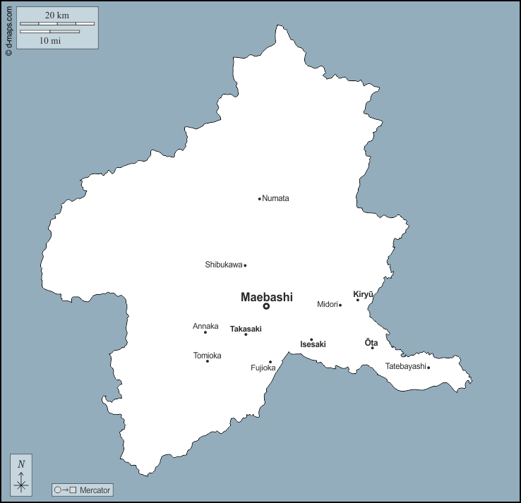 d-maps > Asia > Japan > Gunma > outline, main cities, names
