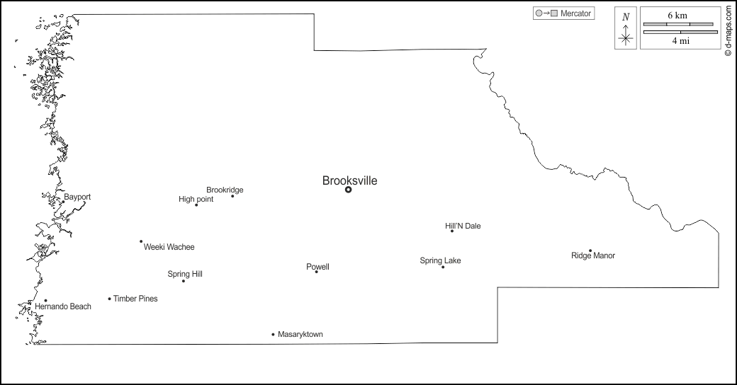 d-maps > United States of America (USA) > Florida > Hernando County > outline, main cities, names, white
