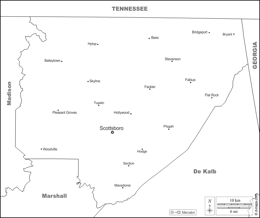 d-maps > United States of America (USA) > Alabama > Jackson County > boundaries, main cities, names, white