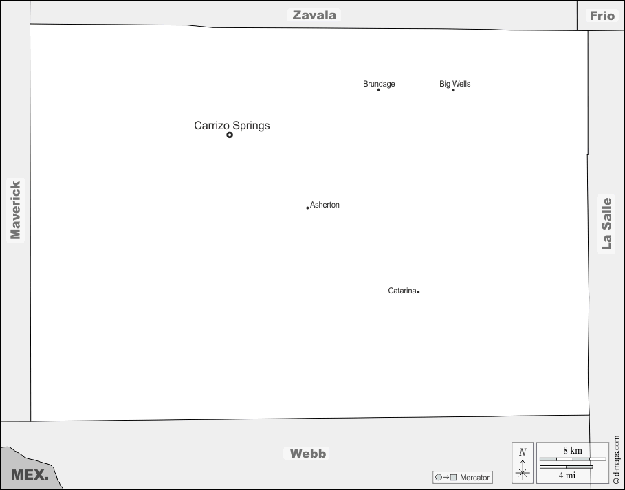 d-maps > United States of America (USA) > Texas > Dimmit County > boundaries, main cities, names