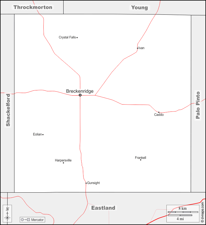 d-maps > United States of America (USA) > Texas > Stephens County > boundaries, main cities, roads, names