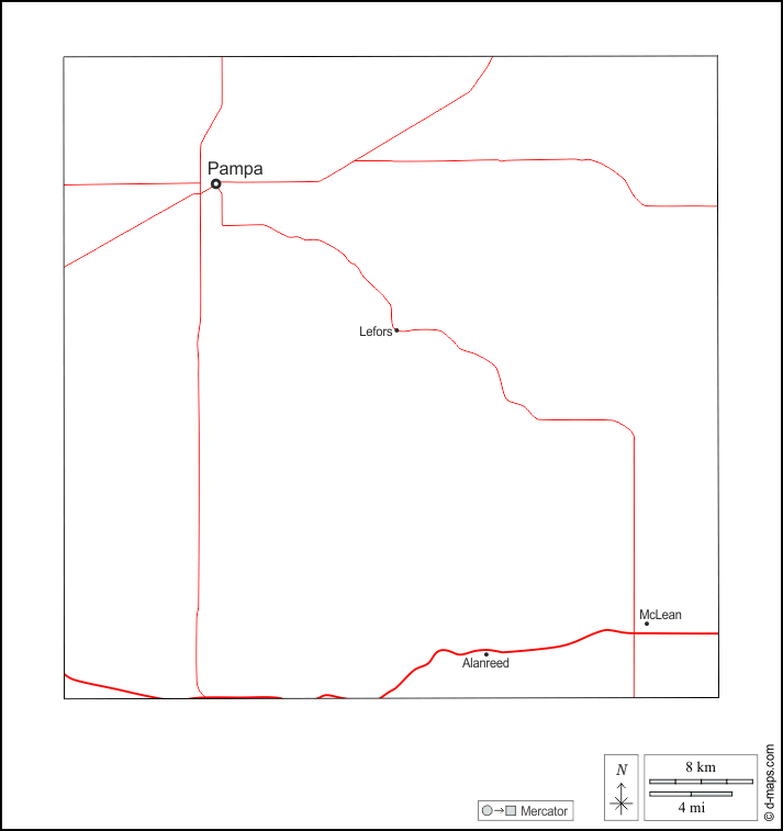 d-maps > United States of America (USA) > Texas > Gray County > outline, main cities, roads, names, white