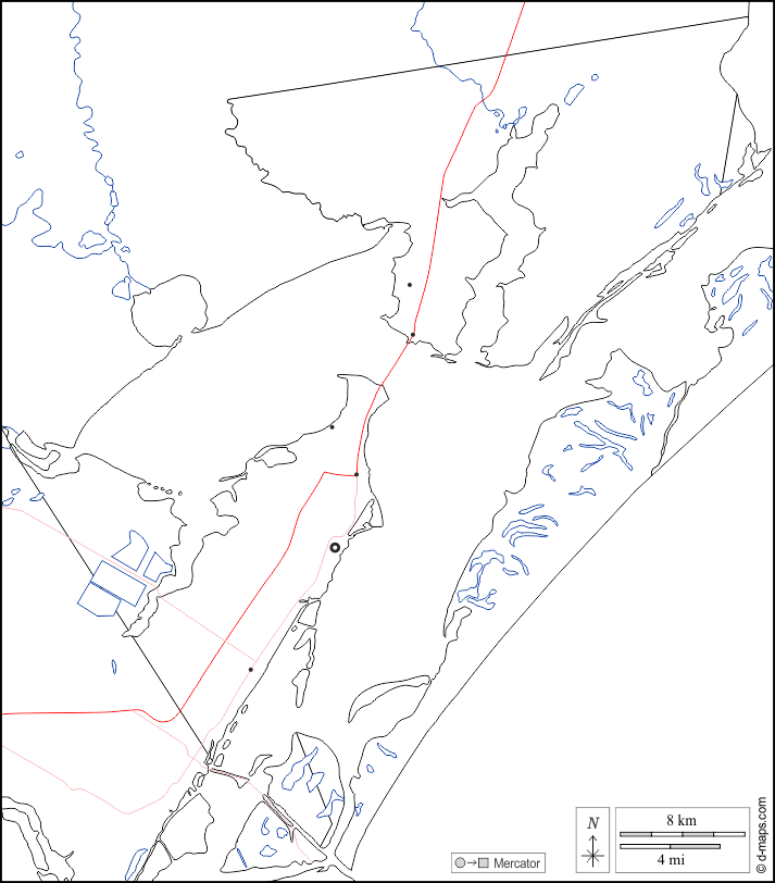 d-maps > United States of America (USA) > Texas > Aransas County > boundaries, hydrography, main cities, roads, white