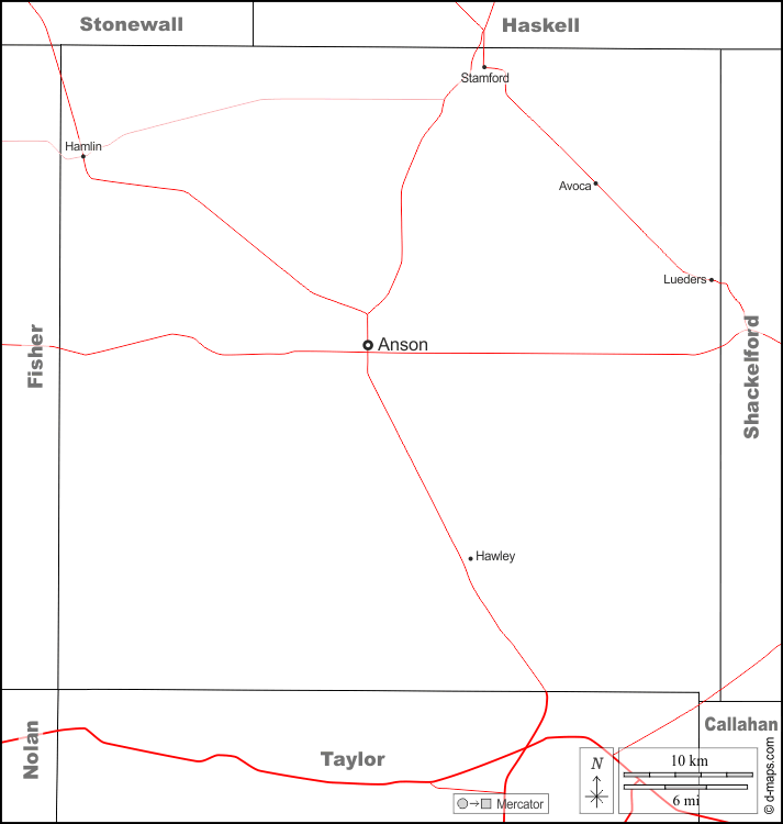 d-maps > United States of America (USA) > Texas > Jones County > boundaries, main cities, roads, names, white
