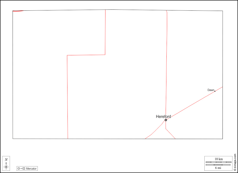 d-maps > United States of America (USA) > Texas > Deaf Smith County > outline, main cities, roads, names, white
