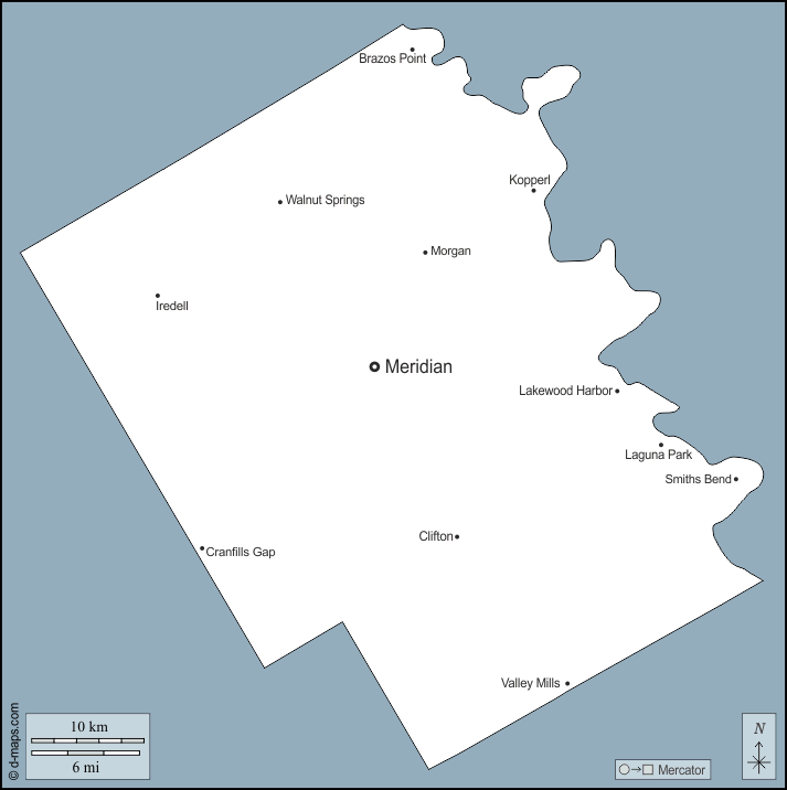 d-maps > United States of America (USA) > Texas > Bosque County > outline, main cities, names