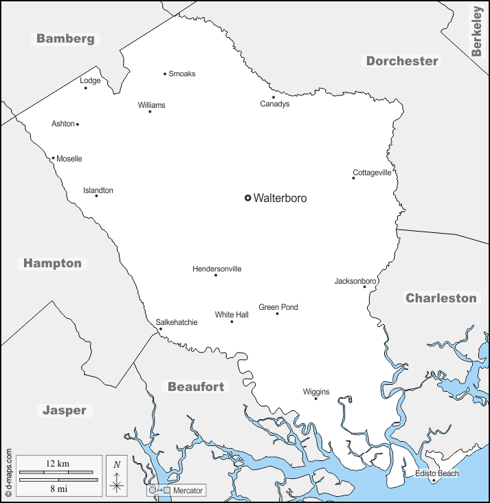 d-maps > United States of America (USA) > South Carolina > Colleton County > boundaries, main cities, names
