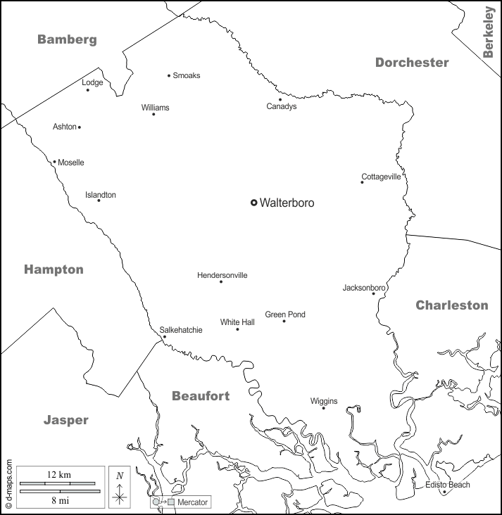 d-maps > United States of America (USA) > South Carolina > Colleton County > boundaries, main cities, names, white