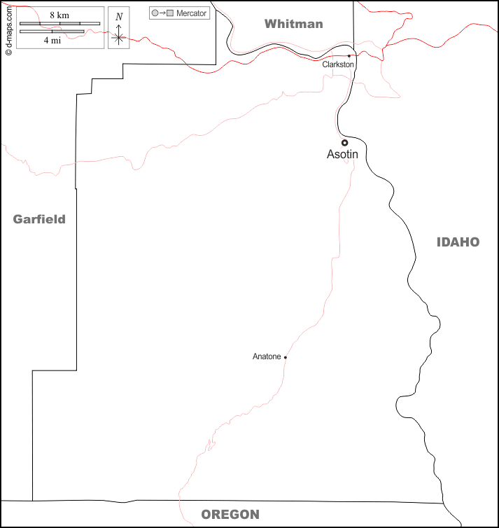 d-maps > United States of America (USA) > Washington > Asotin County > boundaries, main cities, roads, names, white