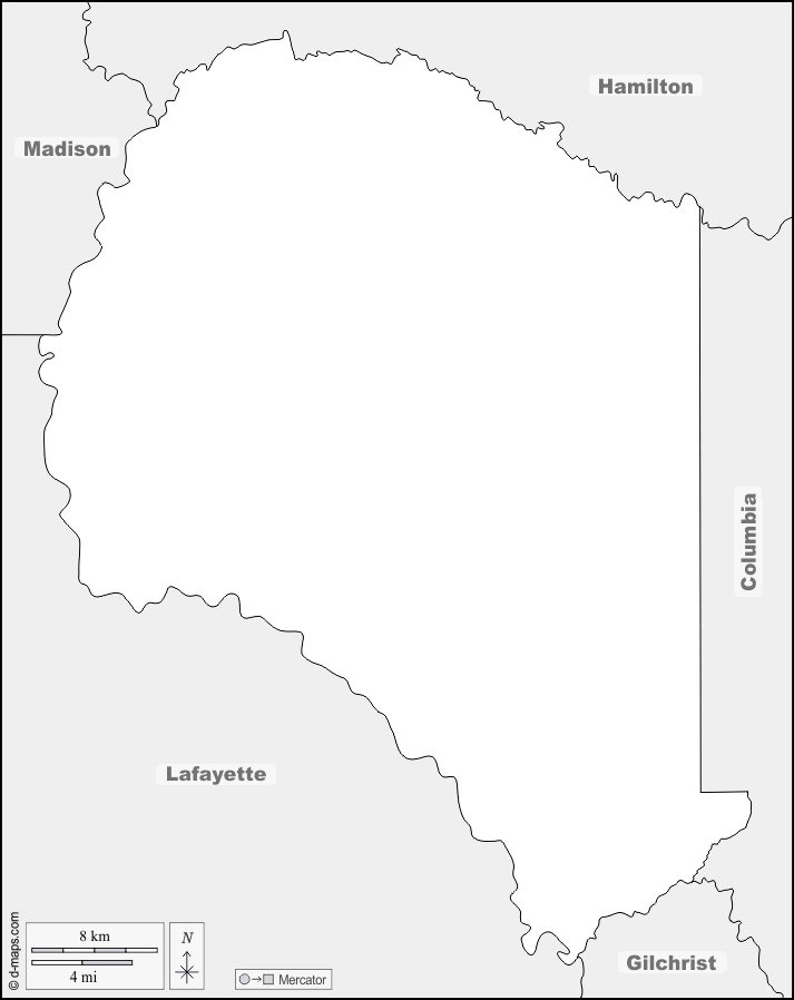 d-maps > United States of America (USA) > Florida > Suwannee County > boundaries, names