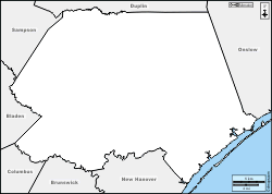 d-maps > United States of America (USA) > North Carolina > Pender County > boundaries, main cities, names