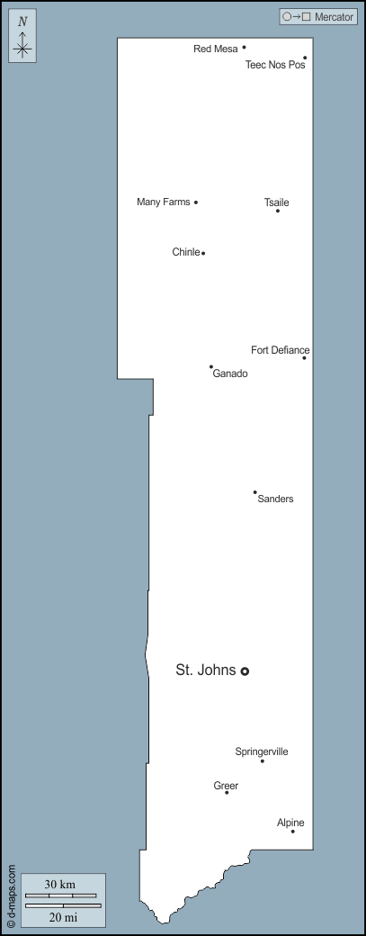 d-maps > United States of America (USA) > Arizona > Apache County > outline, main cities, names