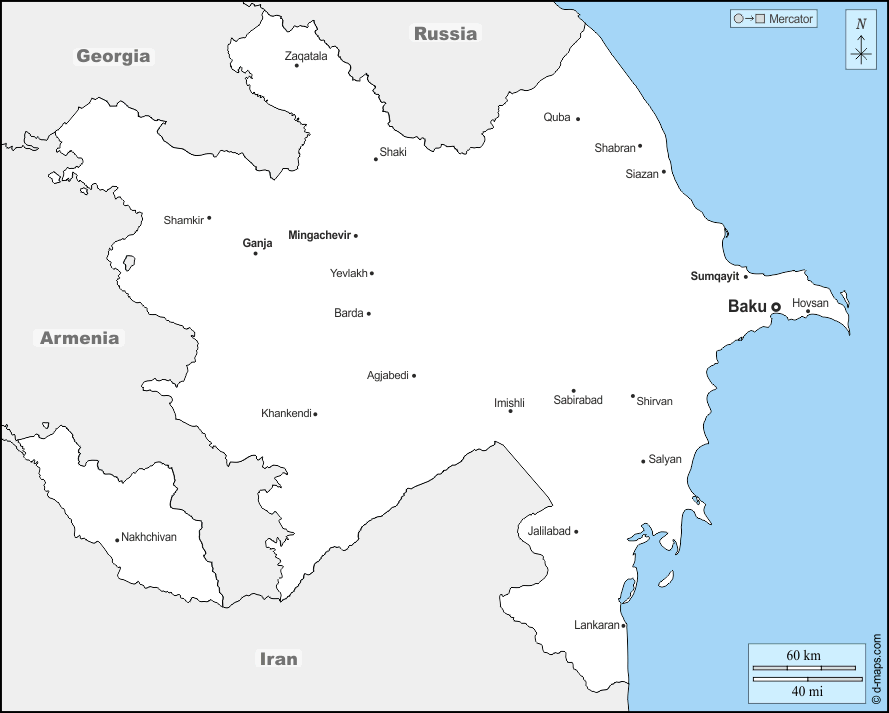 d-maps > Asia > Azerbaijan > boundaries, main cities, names