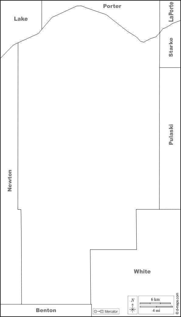 d-maps > United States of America (USA) > Indiana > Jasper County > boundaries, names, white