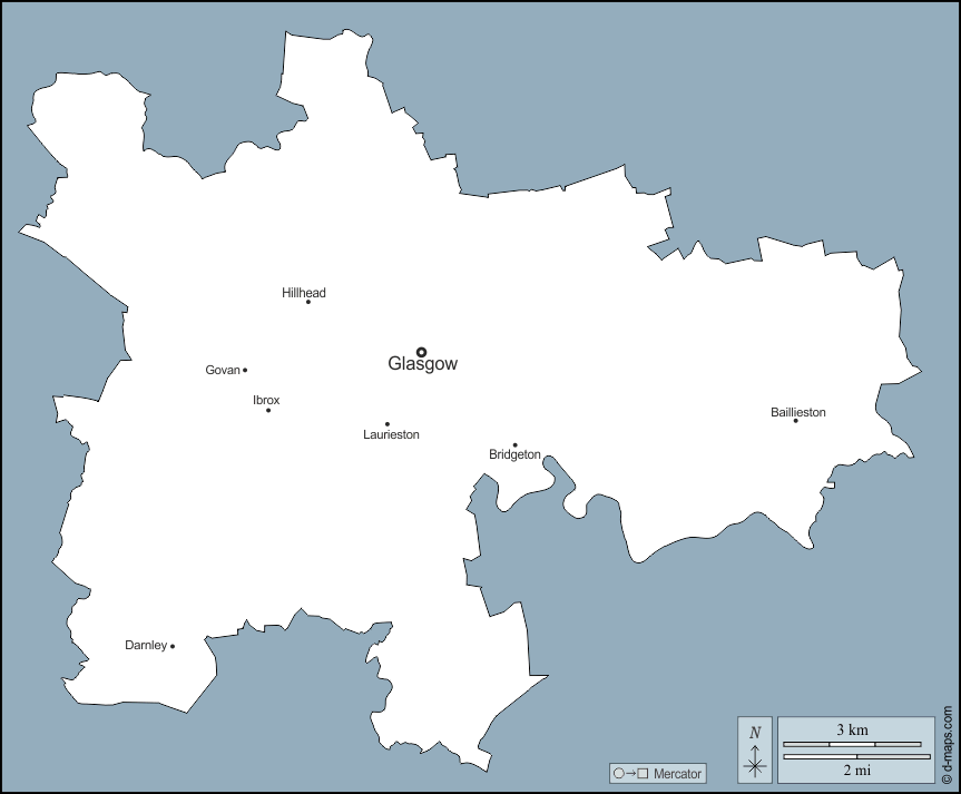d-maps > Europe > United Kingdom > Glasgow > outline, neighborhoods, names