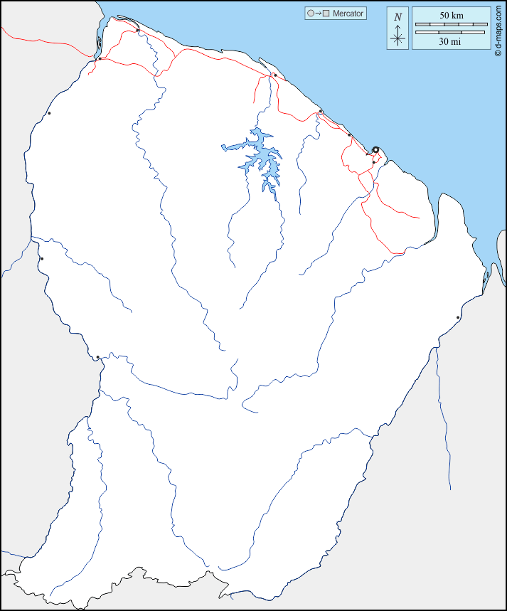 d-maps > Europe > France > French Guiana > boundaries, hydrography, main cities, roads