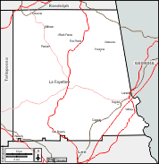 Abanda - Cusseta - Five Points - Fredonia - Huguley - La Fayette - Lanett - Milltown - Oak Bowery - Oakland - Penton - Rock Fence - Valley - Waverly