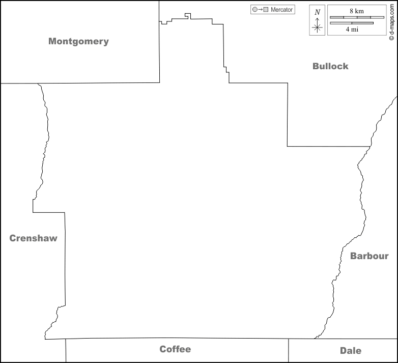 d-maps > United States of America (USA) > Alabama > Pike County > boundaries, names, white