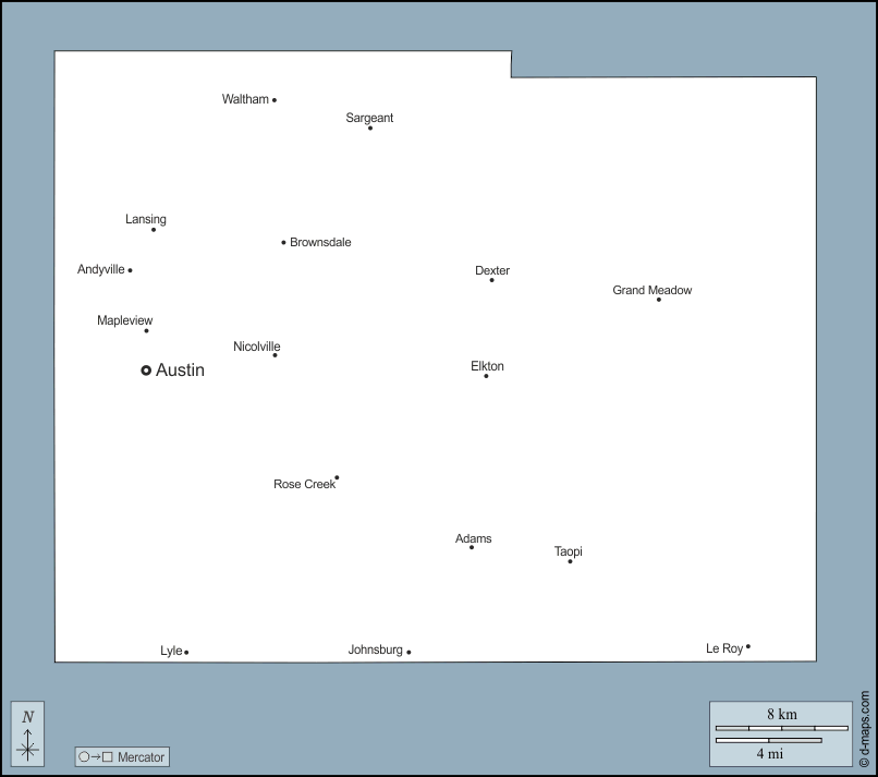d-maps > United States of America (USA) > Minnesota > Mower County > outline, main cities, names