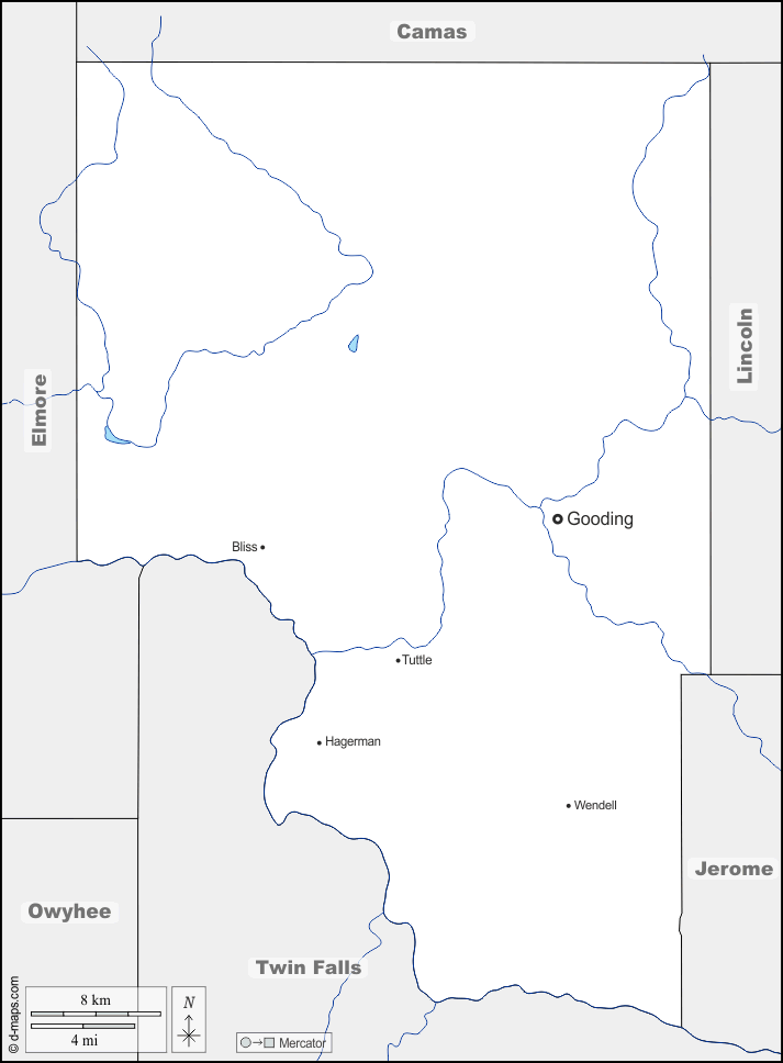 d-maps > United States of America (USA) > Idaho > Gooding County > boundaries, hydrography, main cities, names
