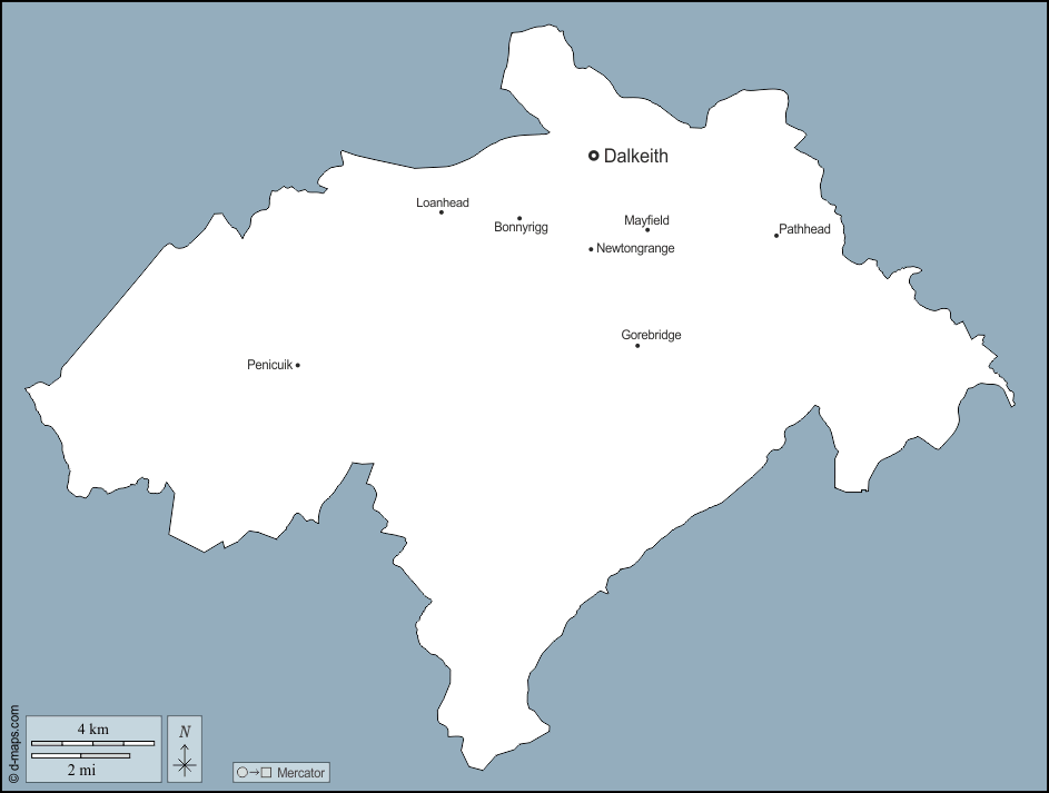 d-maps > Europe > United Kingdom > Midlothian > outline, main cities, names