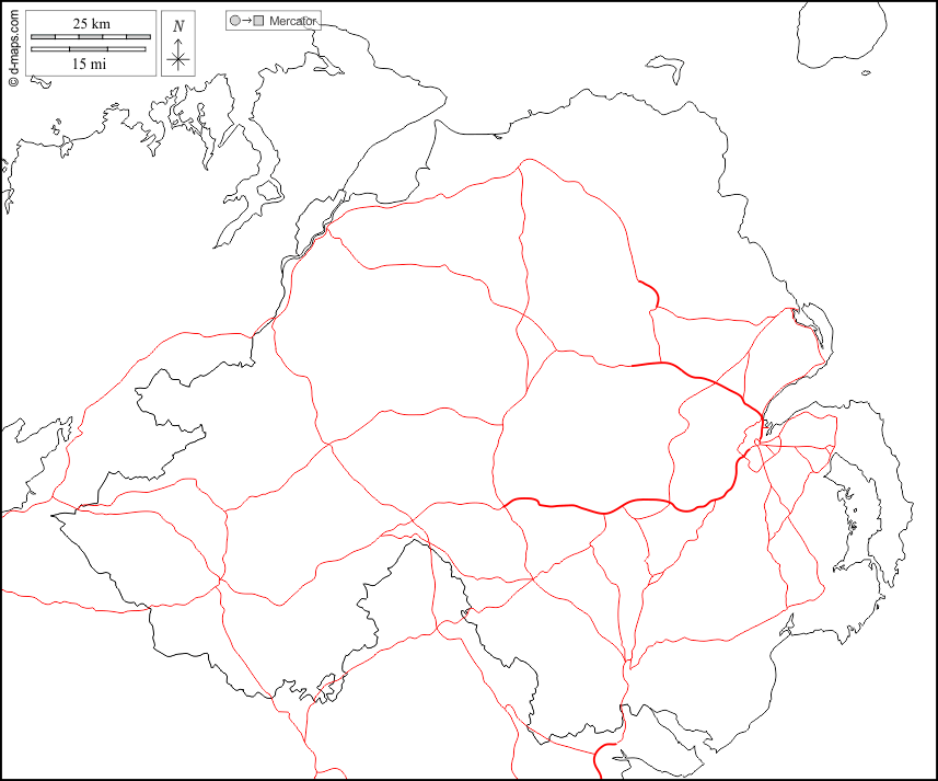 d-maps > Europe > United Kingdom > Northern Ireland > boundaries, roads, white