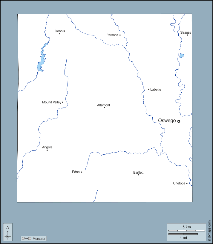 d-maps > United States of America (USA) > Kansas > Labette County > outline, hydrography, main cities, names
