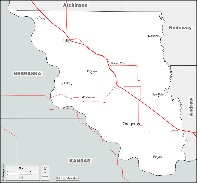 d-maps > United States of America (USA) > Missouri > Holt County > boundaries, main cities, roads, names