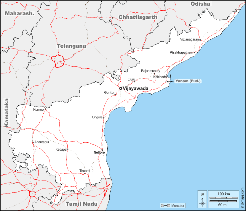 d-maps > Asia > India > Andhra Pradesh > boundaries, main cities, roads, names